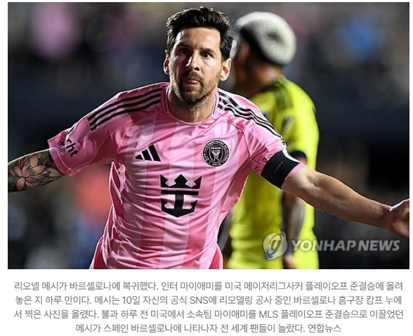 불과 하루 전 미국에서 소속팀 마이애미를 MLS 플레이오프 준결승으로 이끌었던 메시가 스페인 바르셀로나에 나타나자 전 세계 팬들이 놀랐다.