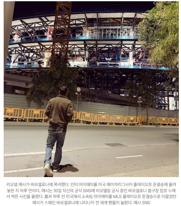바르셀로나 홈구장 캄프 누는 현재 좌석 증설과 시설 개선을 위한 리모델링을 진행 중이다. 2021년 여름 바르셀로나를 떠났던 메시가 오랜만에 고향으로 돌아온 것이다.