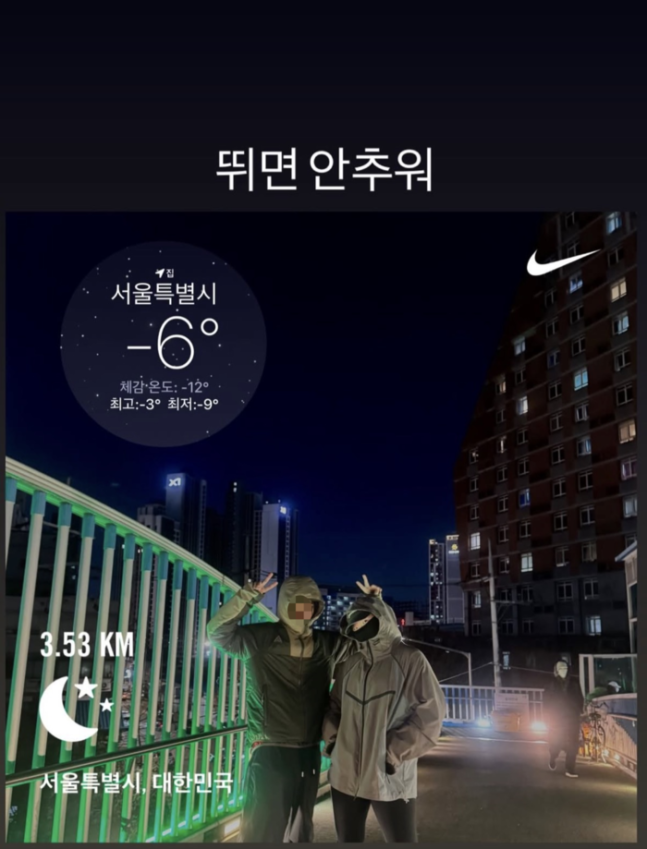 [스포츠서울 | 윤새봄 기자] 가수 악뮤(AKMU) 이수현이 영하권 강추위 속에도 러닝을 이어가며 남다른 의지를 드러냈다.