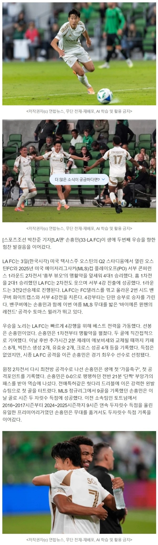 '1골-1도움' 트랜지션만으로 서부 4강행 이끈 손흥민...LAFC감독도 "전직 수비수로 SON은 막기 어려운 선수"