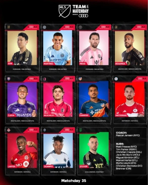 송흥민은 23일<한국시간>MLS 사무국이 발표한 MLS 메치데이 35'팀 오브 더 메치데이'에 선정됐다. 손흥민은 리오넬 메시<인터 마이애미>, 알론소 마르티네스<뉴욕시티>와 함께 공격수 부분에 이름을 올렸다.