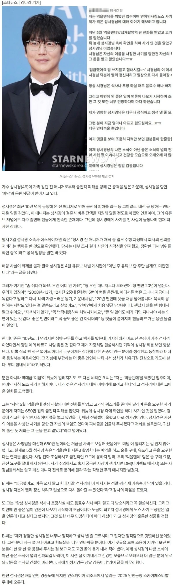 자기도 피해자인데..성시경, 알고 보니 '먹을텐데' 업주에 650만원 피해 보상 '역대급 미담'